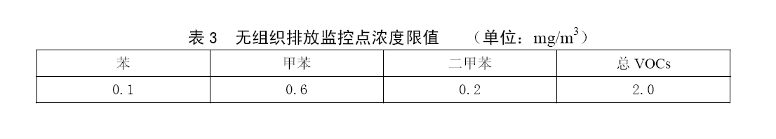 無組織排放應執(zhí)行表3的無組織排放監(jiān)控點濃度限值。