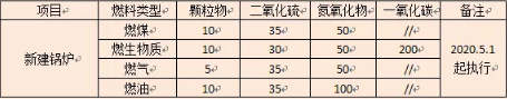 新建鍋爐限值與在用建成區(qū)限值相同。如下(單位mg/m3):