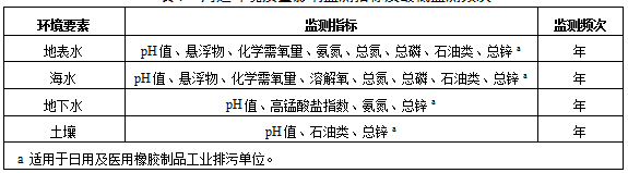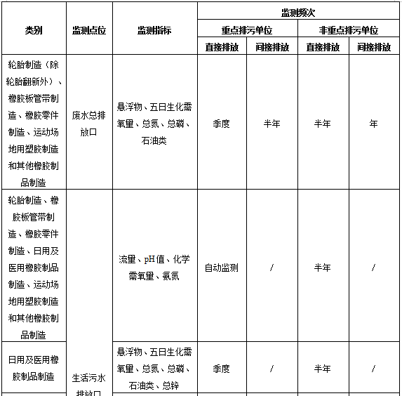 表1橡膠制品工業(yè)排污單位廢水排放監(jiān)測點位、監(jiān)測指標及最低監(jiān)測頻次
