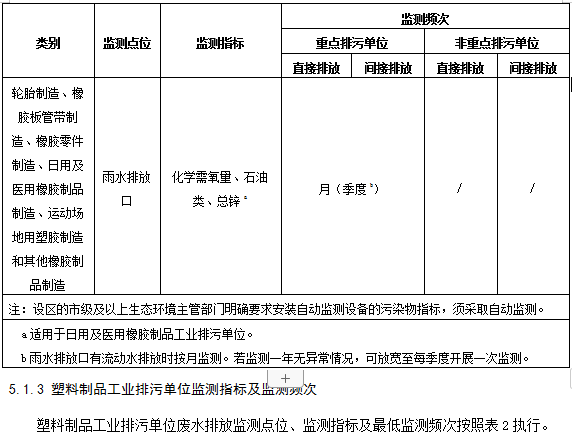 5.1.2 橡膠制品工業(yè)排污單位監(jiān)測指標及監(jiān)測頻次