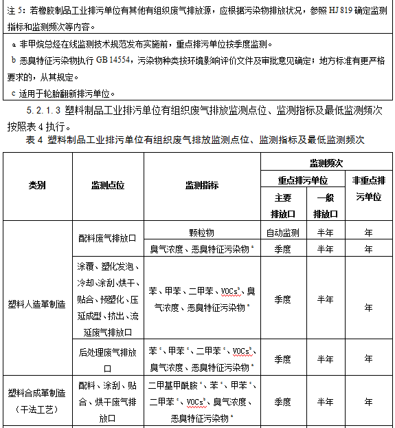 5.2.1.2橡膠制品工業(yè)排污單位有組織廢氣排放監(jiān)測點位、監(jiān)測指標及最低監(jiān)測頻次按照表3執(zhí)行。