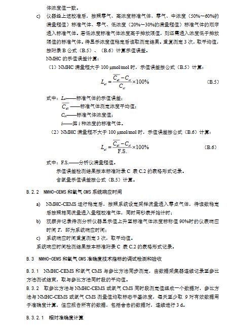 9.3.2.1非甲烷總烴技術(shù)指標(biāo)要求見本標(biāo)準(zhǔn)表1,操作步驟和計(jì)算公式按照HJ1013中7.2現(xiàn)場(chǎng)檢測(cè)要求和方法及本標(biāo)準(zhǔn)附錄B相關(guān)要求執(zhí)行。準(zhǔn)確度驗(yàn)收時(shí),待測(cè)NMHC-CEMS與參比方法同步對(duì)現(xiàn)場(chǎng)排放非甲烷總烴進(jìn)行測(cè)量。參比方法可選用HJ38,也可選用國家制訂發(fā)布的其它非甲烷總烴測(cè)試方法標(biāo)準(zhǔn)。