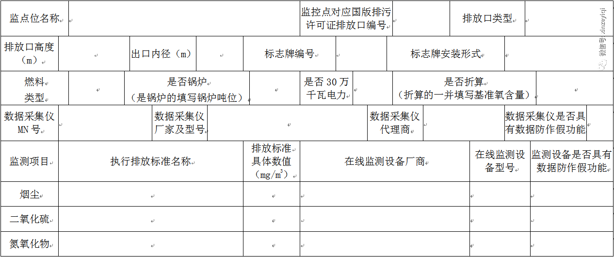 1、每個監(jiān)控點位填寫一張表,表中未涉及監(jiān)測因子企業(yè)可自行添加行。