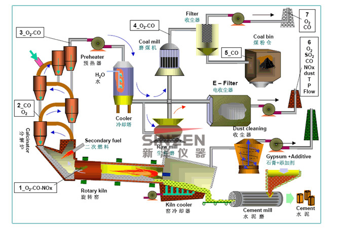 水泥工業(yè)在燃料分解、燃燒等生產(chǎn)過程中會產(chǎn)生粉塵、SO2、NOX、CO、CO2等氣體對大氣環(huán)境產(chǎn)生嚴重影響。次檢查這些氣體的含量,對于節(jié)能減排、提高生產(chǎn)效率、降低能耗和保障生命及生產(chǎn)的安全至關重要。旋窯、回轉(zhuǎn)窯是能耗大戶,為了節(jié)能降耗,實現(xiàn)燃燒爐中煤氣的充分燃燒,就需要在線檢測回轉(zhuǎn)窯煙氣的組份含量,在保證燃燒溫度的基礎上調(diào)節(jié)好煤氣和空氣的配比,達到節(jié)能降耗的目的。 新澤科技氣體分析技術能夠準確可靠地測量各類工業(yè)氣體含量,為水泥建材提供完整的氣體分析解決方案。