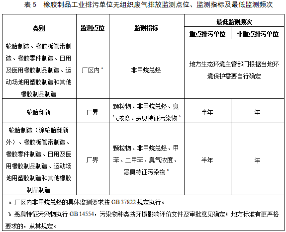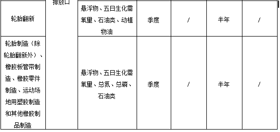 5.1.2 橡膠制品工業(yè)排污單位監(jiān)測指標及監(jiān)測頻次