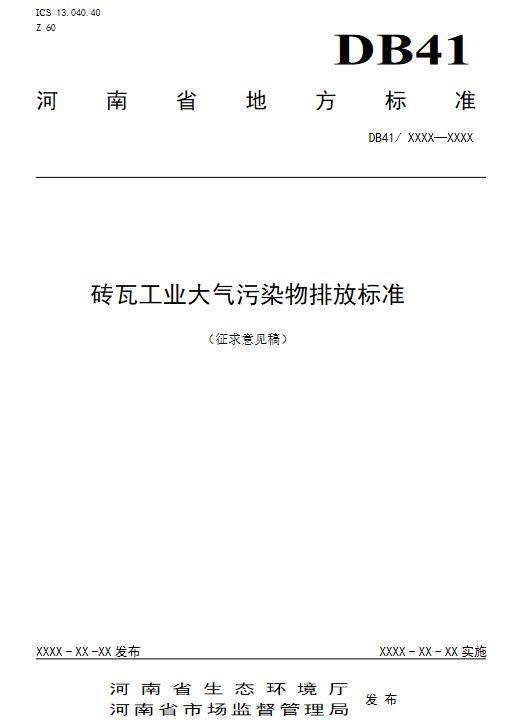 ?日前,河南發(fā)布《磚瓦工業(yè)大氣污染物排放標(biāo)準(zhǔn)》(征求意見稿)。詳情如下: